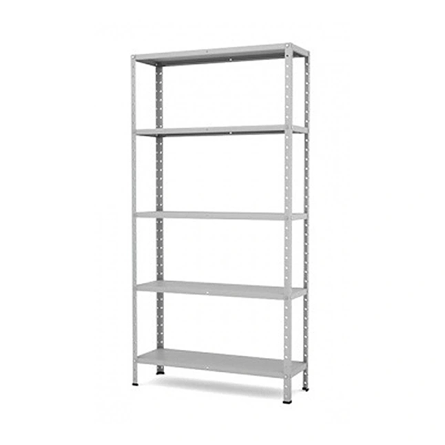 Descrição do Produto: EP5AR, estrutura chapas #20 e #26 (0,90mm e 0,45mm), 5 prateleiras 920mm x 300mm, com reforço ômega fino, 4 colunas de 1800mm de altura, capacidade por prateleira 25kg (bem distribuídos)