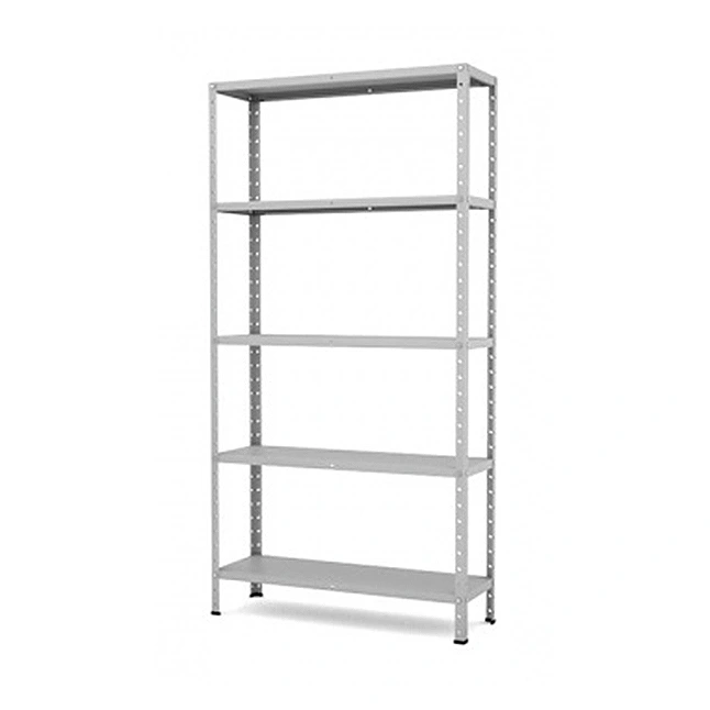 EP5 BR: Estrutura chapas #20 e #26 (0,90 mm e 0,45 mm), 5 prateleiras 920mm x 400mm, com reforço ômega fino, 4 colunas de 1800mm de altura, capacidade por prateleira 25kg (bem distribuídos)